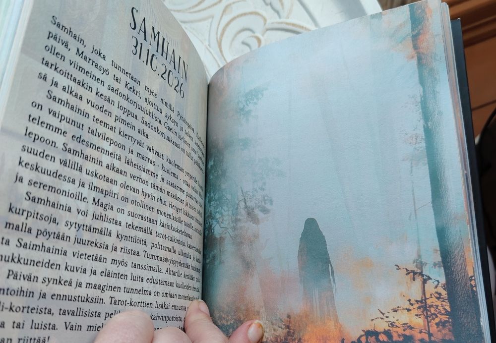 Lokakuussa ilmestynyt uutuus eli Vuodenpyörä 2026 - Kasvimagia, kuunkierto ja seremoniat- kalenterikirja. Tekijät: Kati Torkko, Piia Hintikainen, Petra Hintikainen