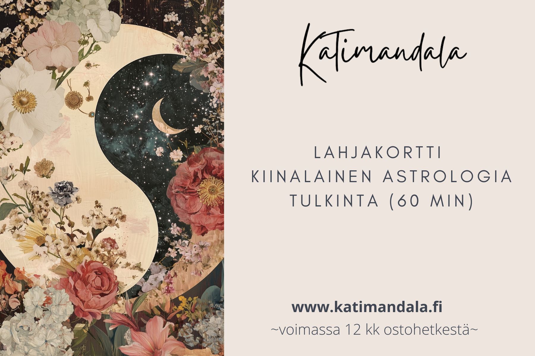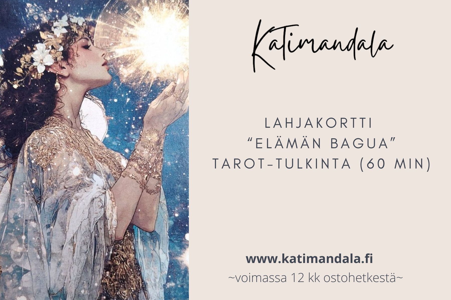 Valmiiden tulkintalahjakorttien lisäksi on saatavilla myös yleisiä eri suuruisia lahjakortteja (30€-200€), joiden summan voi käyttää joko tuotteisiin, kursseihin tai tulkintoihin. Lahjakortit ovat ostettavissa Katimandala shopissa tai laita mulle viestiä niin saat mobilepay/tilitiedot ja lahjakortin suoraan sähköpostiin. Lahjakortit ovat 12 kk voimassa, joten sen ehtii hyvin käyttää ensi vuoden aikana =) Katimandala shoppiin pääset tästä => Katimandala Shop